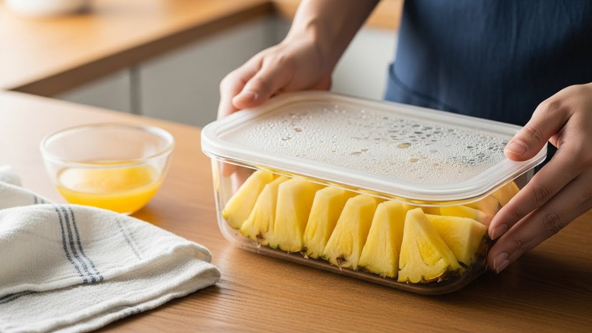 家庭で切ったカットパインは清潔な密閉容器で2〜4日を目安にしてください。切り口を乾燥させないようにラップで密封するか、蓋つき容器に入れるのが良いでしょう。匂い移りを防ぐため、強い香りの食材から離して保管します。