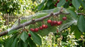 枝を水平に支えるワイヤーの網