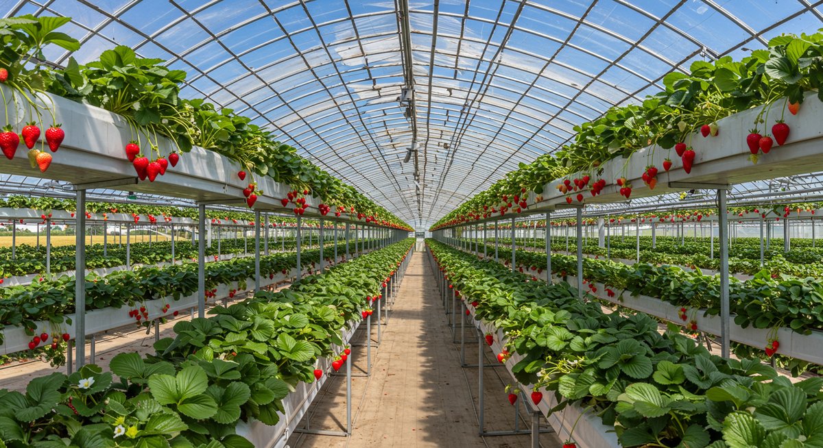 高設栽培では、安定した環境を保つためにビニールハウスがよく使われます。ビニールハウスは外部の天候に左右されず、イチゴが最も生育しやすい気温や湿度を維持しやすい利点があります。